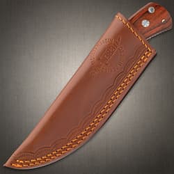 The rich pakkawood handle, accented with mosaic pins and secured with nickel silver pins, is both stylish and ergonomic, offering a comfortable grip during extended use. Measuring 7 7/8” overall, the Diamondback is perfectly sized for versatility. It comes complete with a premium leather sheath for protection and easy transport, making it a reliable companion for any task.